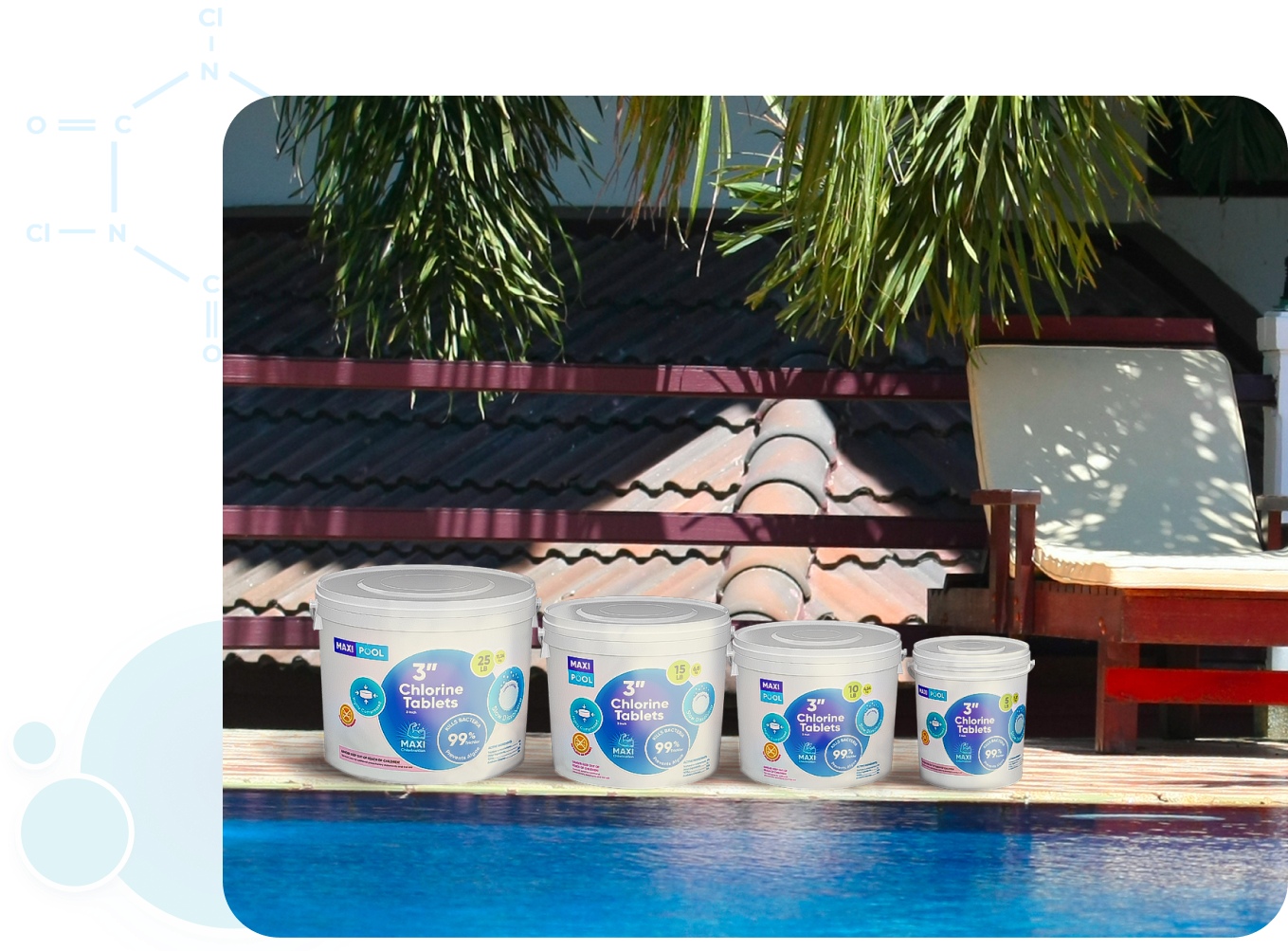 Our unique formula in Maxi-Pool chlorine tablets ensures maximum efficiency in pool care. With advanced technology, your pool will remain clean and safe at all times.
