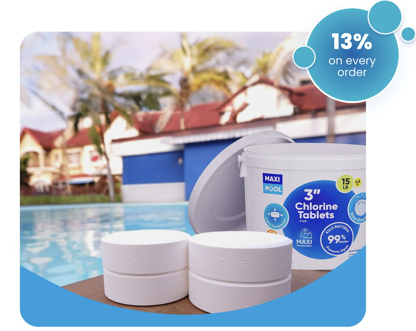 Ensure your pool is always in top shape with our convenient Subscribe & Save program. Subscribe to monthly deliveries of Maxi-Pool tablets and enjoy a 15% discount on every order, with automatic deliveries right to your door. No more last-minute store trips — just consistent, hassle-free pool maintenance.